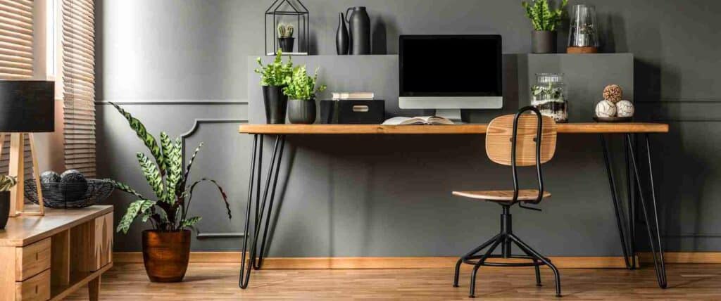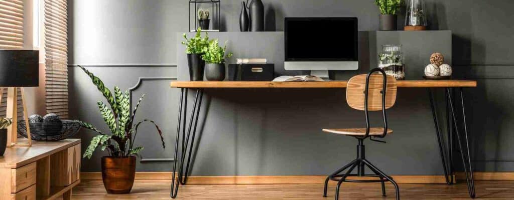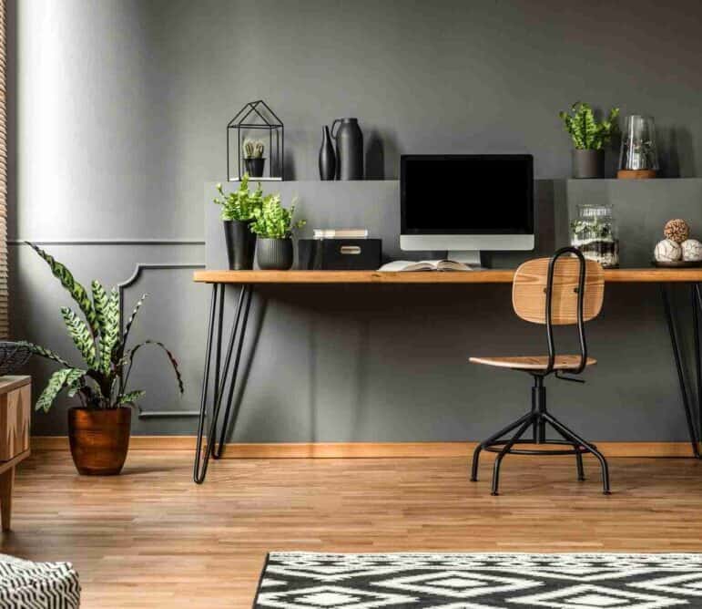 It’s essential to maintain good organization in your home office, especially if the space is small. Hang floating shelves for files and equipment, use baskets for sorting mail, or use desk drawers to organize. Whatever fits your style best.